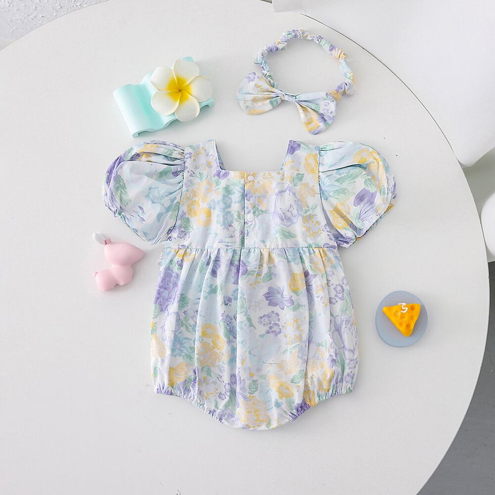 ins 韓国子供服 女の子 半袖 花柄 おしゃれ 出産祝い カバーオール 普段着 森ガール 春 夏