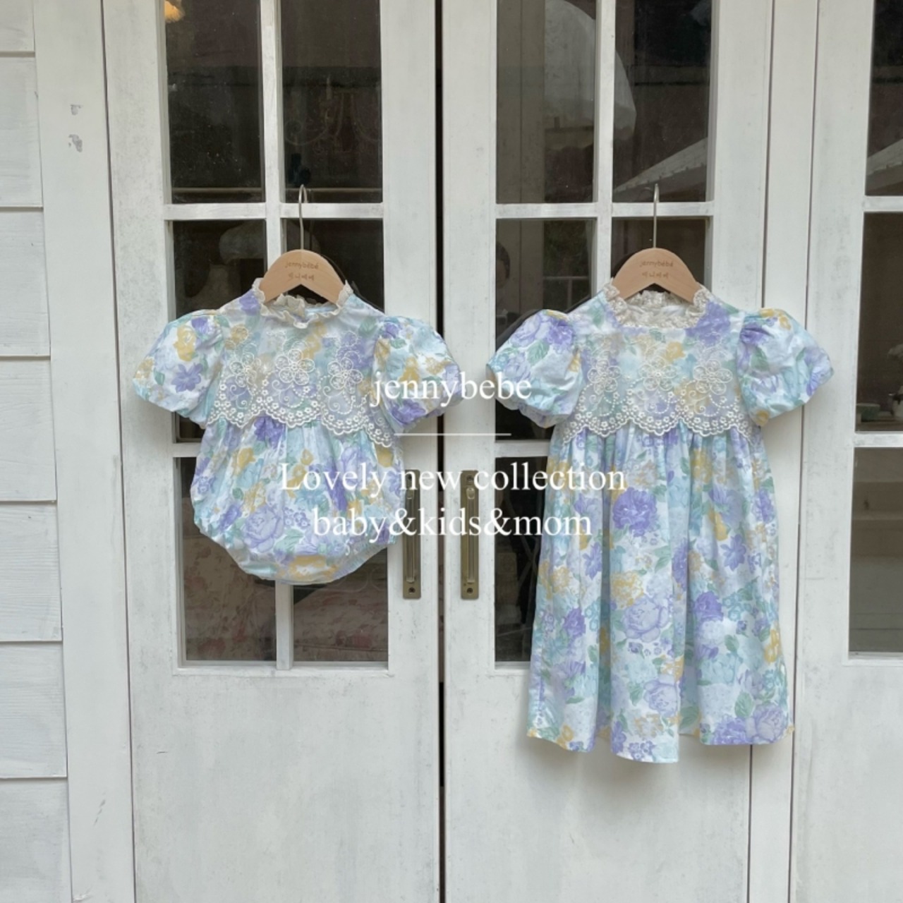 【海外からの取り寄せ】2024夏新作 子供服 姉妹 お揃い レース襟 選べる2タイプ 花柄 ロンパース ワンピース 可愛い #[ckd1093449_28000]【送料込み】【250502】