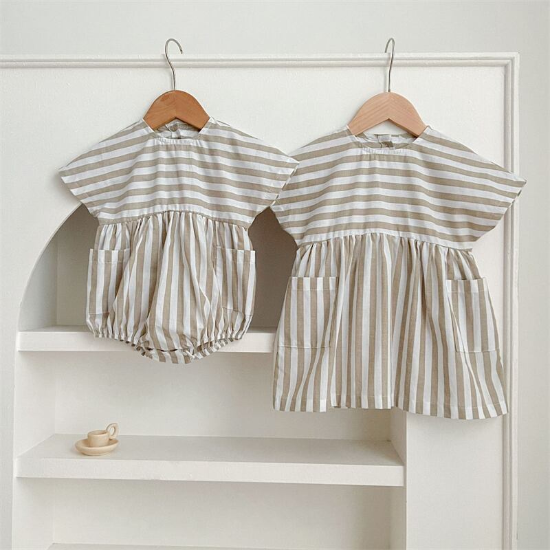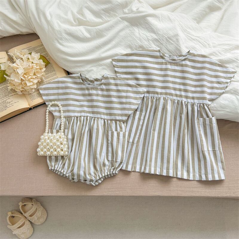 【海外からの取り寄せ】2024夏新作 子供服 姉妹 お揃い 選べる2タイプ ストライプ柄 ロンパース ワンピース 可愛い #[ckd1093410_15700]【送料込み】【250502】