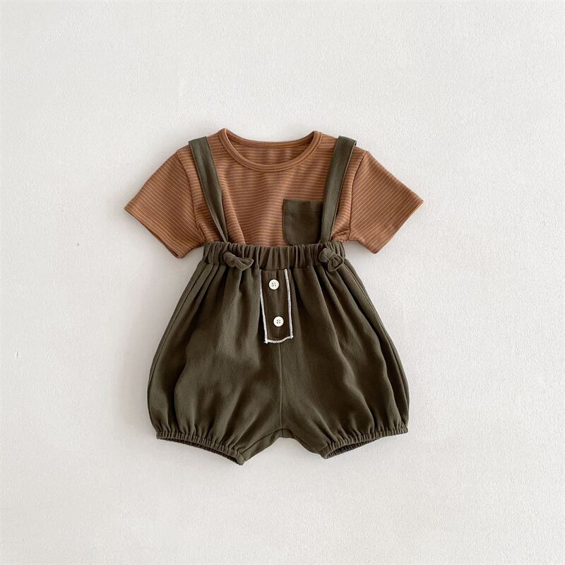【海外からの取り寄せ】2024夏新作 ベビー服 ストライプ柄 ロンパース Tシャツ 子供服 可愛い サロペット 柔らか 半袖 #[ckd1093393_10600]【送料込み】【250422】