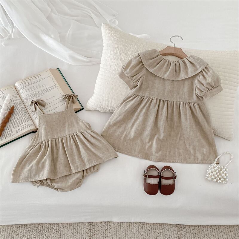 【海外からの取り寄せ】2024夏新作 子供服 綿麻 姉妹 お揃い ロンパース ワンピース 選べる2タイプ 可愛い おしゃれ #[ckd1093401_20200]【送料込み】【250517】