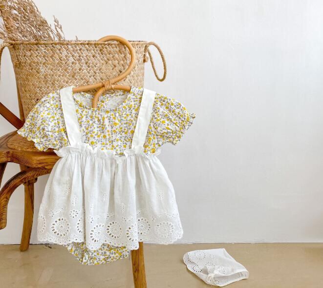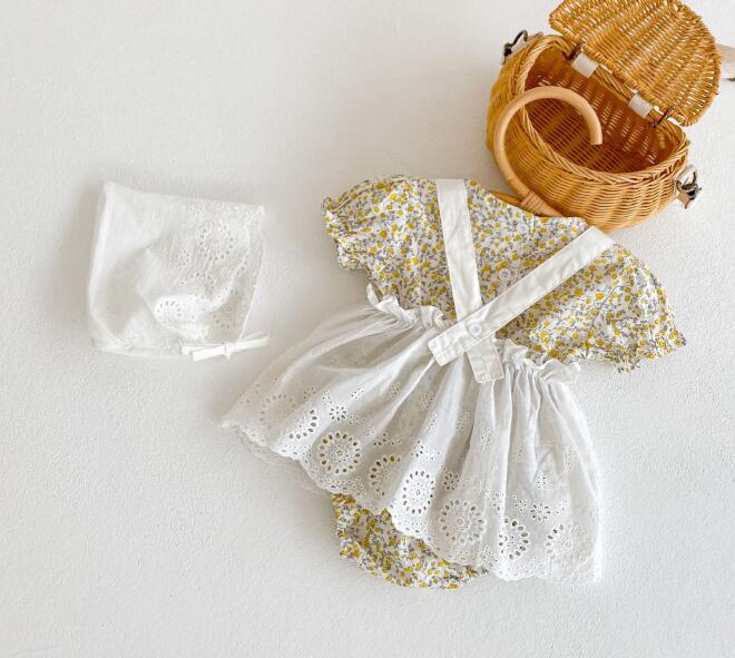 【海外からの取り寄せ】夏 ベビーロンパース スカート 帽子 韓国風 女の子 3点セット 花柄 子供服 ベビー服 #[ckd101410_18800]【送料込み】【250526】