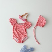 ins 韓国子供水着 パフスリーブ ボンネット 練習用 可愛い 幼児 女児 おしゃれ
