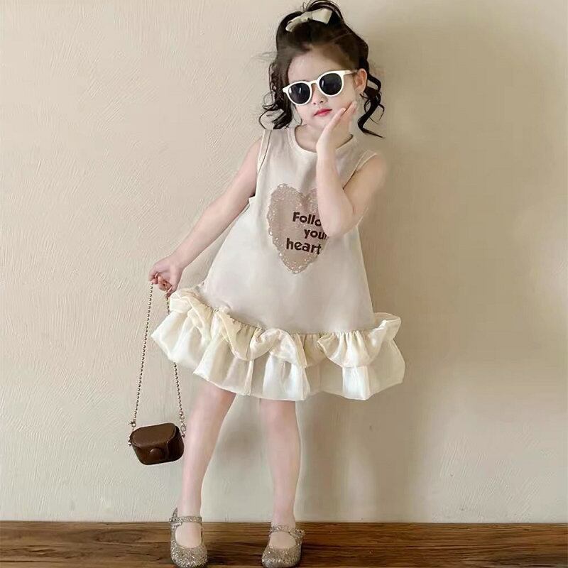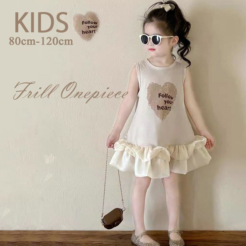 【海外からの取り寄せ】2024新作 韓国子供服 キッズ 女の子 かわいい 裾フリル ノースリーブ ワンピース ハート 春夏 ワンピ 子供 #[kids743_13800]【送料込み】【250326】