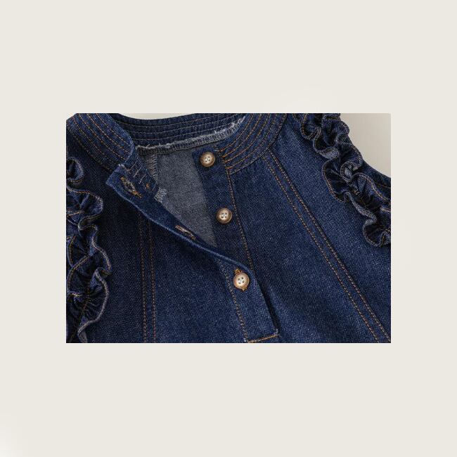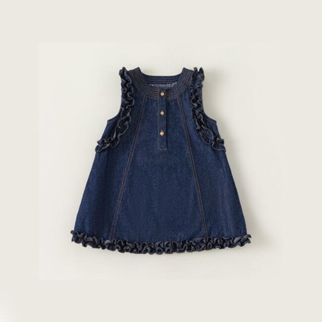 ・可愛くて華やかなラッフルフリルデニムワンピース。