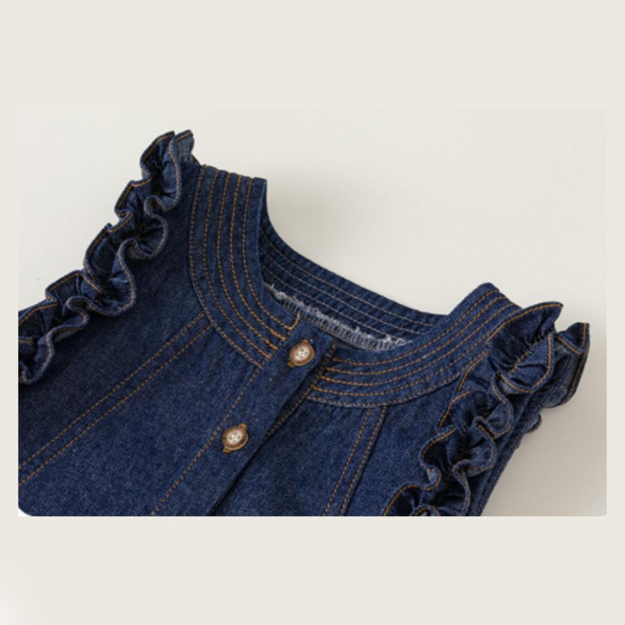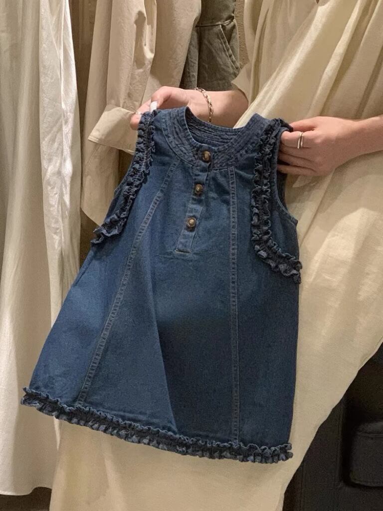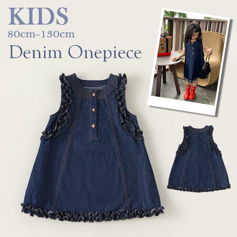 【海外からの取り寄せ】2024新作 韓国子供服 キッズ 女の子 かわいい 裾フリル ノースリーブ ワンピース デニム 春夏 ワンピ 子供 #[kids745_14800]【送料込み】【250607】