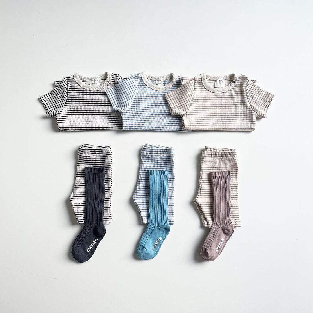 【海外からの取り寄せ】2023夏新作 ベビー服 リブ 上下セット 半袖 Tシャツ ショートパンツ 柔らかい 子供服 可愛い #[ckd1091795_15900]【送料込み】【250517】