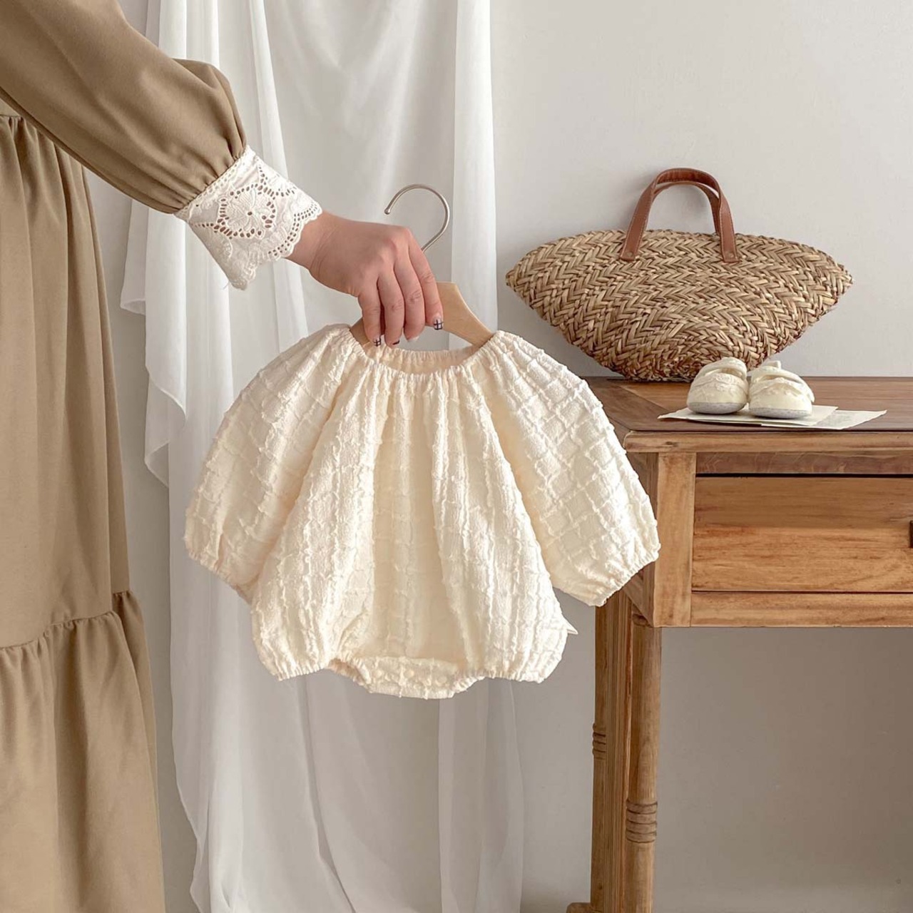 ins 韓国子供服 パフスリーブ 女児 森ガール 出産祝い 春 秋 新生児 カバーオール 柔らか
