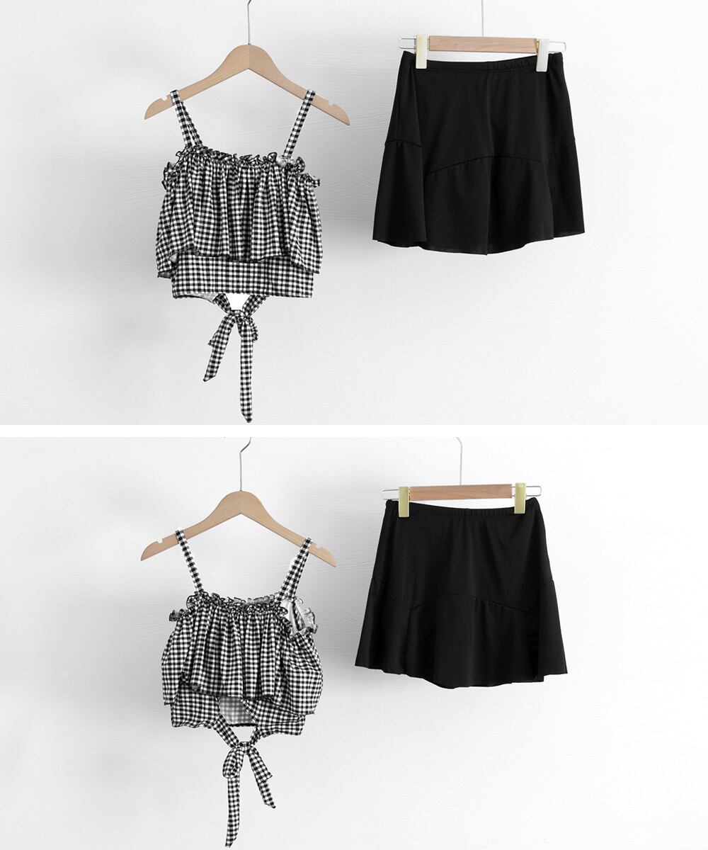 ギンガムチェック セパレート水着 レディース 露出控えめ ハイウエスト パンツ付きミニスカート 2点セット水着大人可愛い