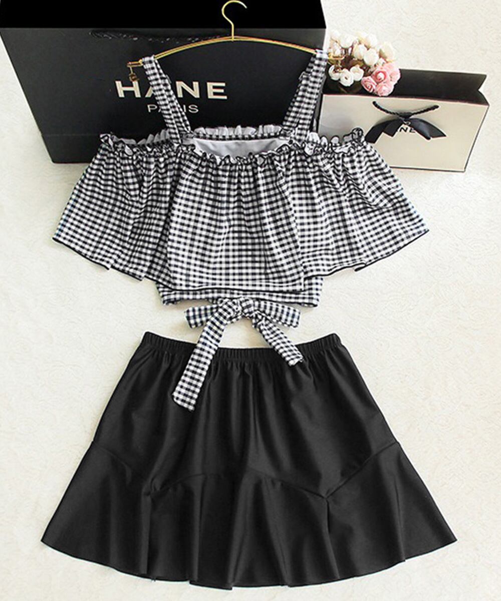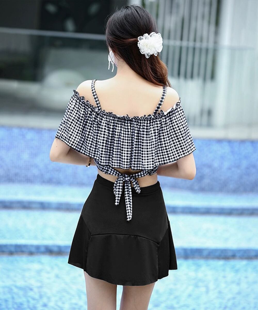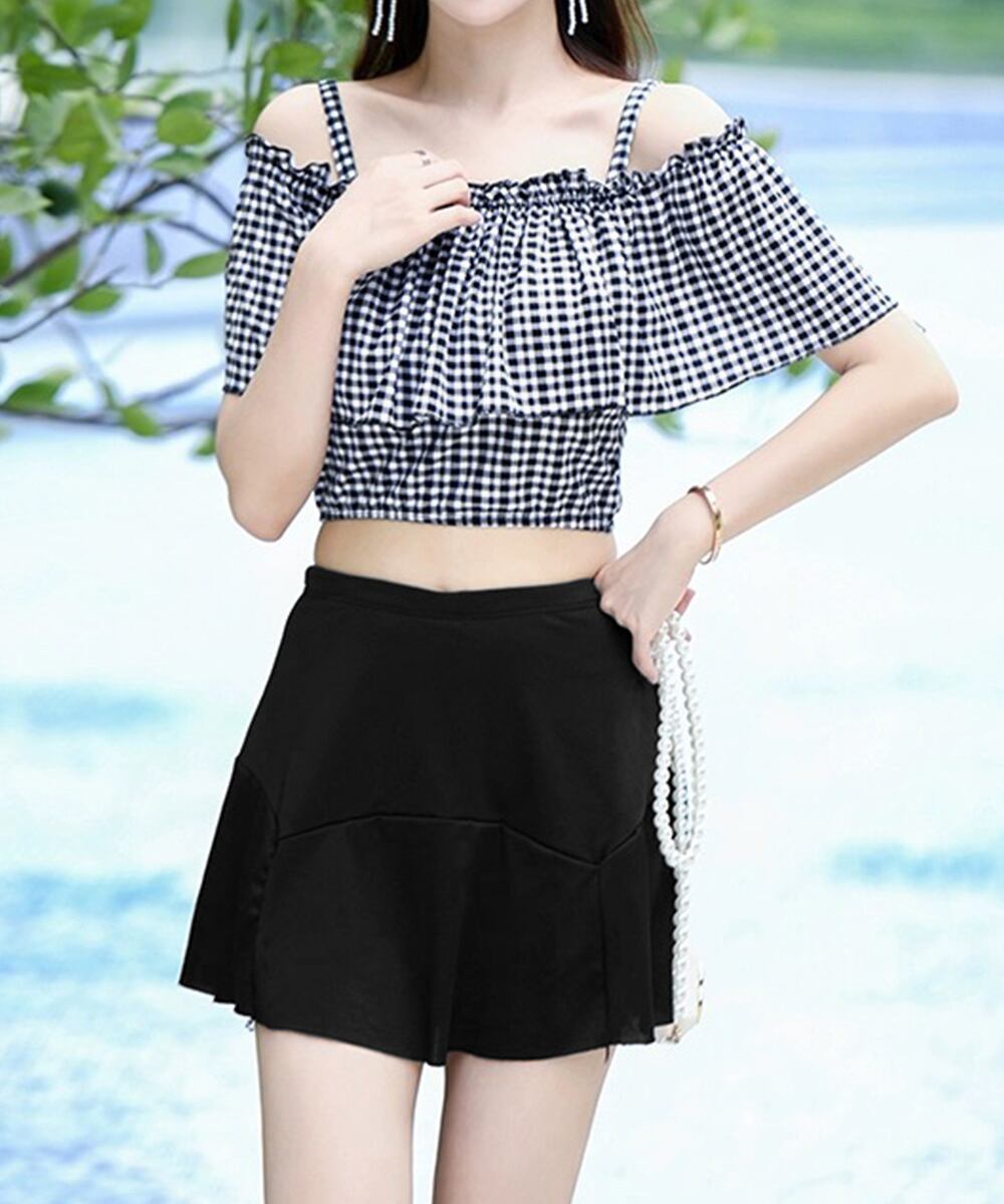【日本倉庫からの発送】 水着 オフショルダーチェック柄水着韓国風 #[84MOSH-001_16300]【送料込み】【250808】