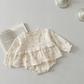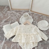 ins 韓国子供服 赤ちゃん パフスリーブ フリル 女の子 普段着 カジュアル 2点セット 春 秋