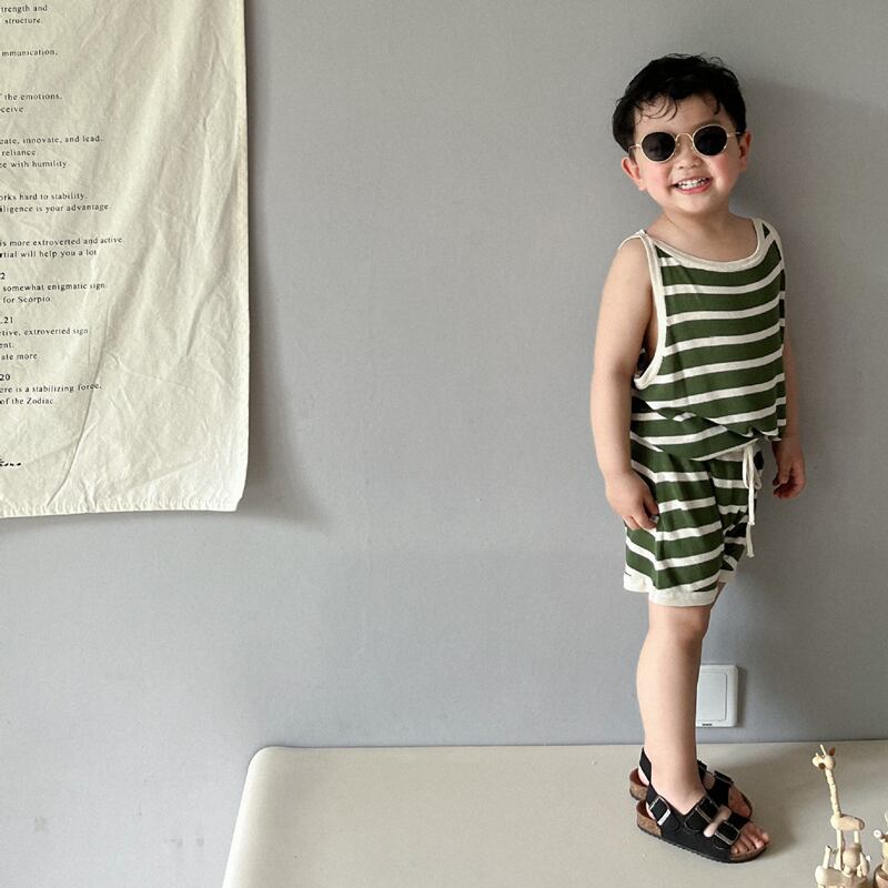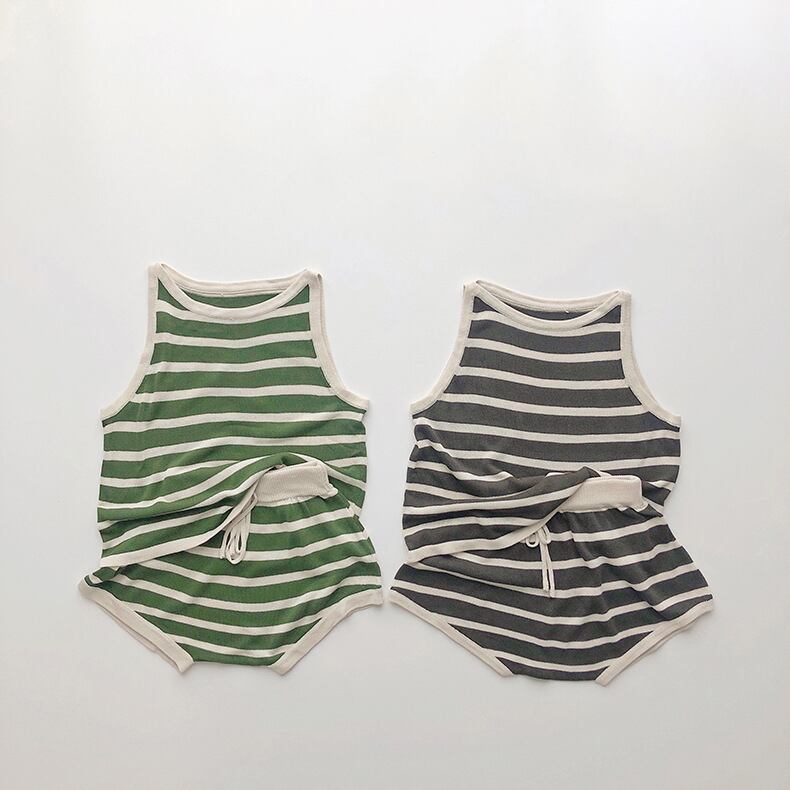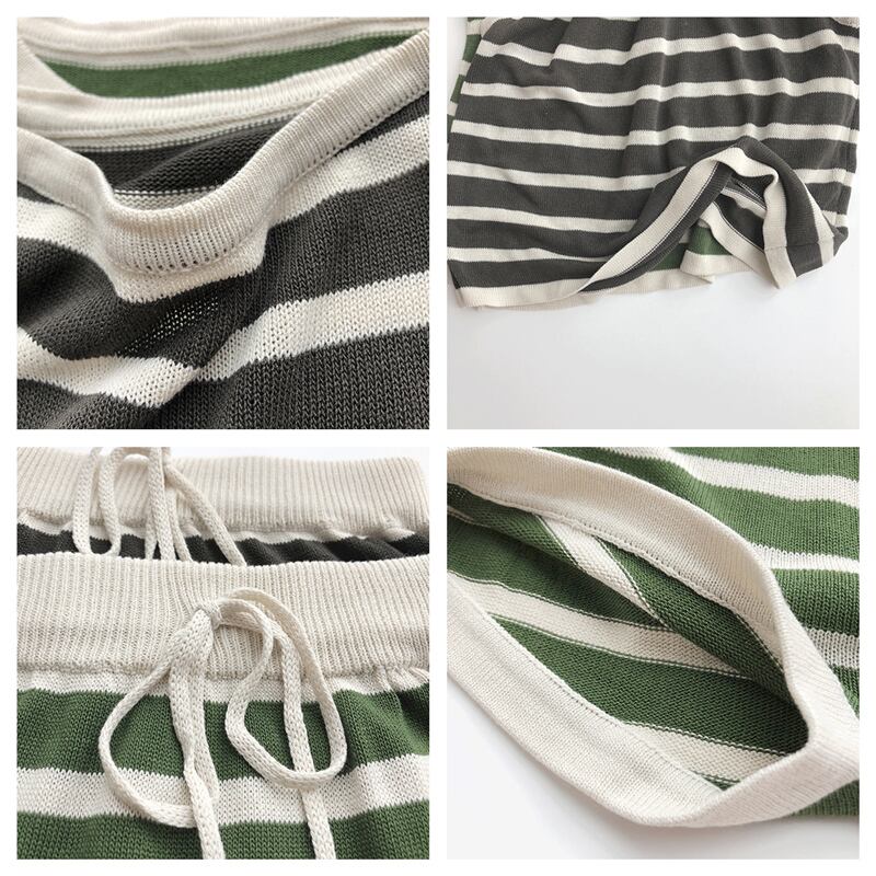 2023夏新作 子供服 ニット セットアップ ベスト ショートパンツ ストライプ柄 柔らかい 涼しげ #[ckd1091845_24100]【海外倉庫からの発送】 【北海道・沖縄・離島は発送できません】
