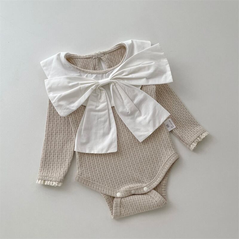 【海外からの取り寄せ】2023秋新作 ベビー服 ロンパース リボン レース 女の子 大きなネック ニット おしゃれ 子供服 #[ckd1092247_16400]【送料込み】【250503】