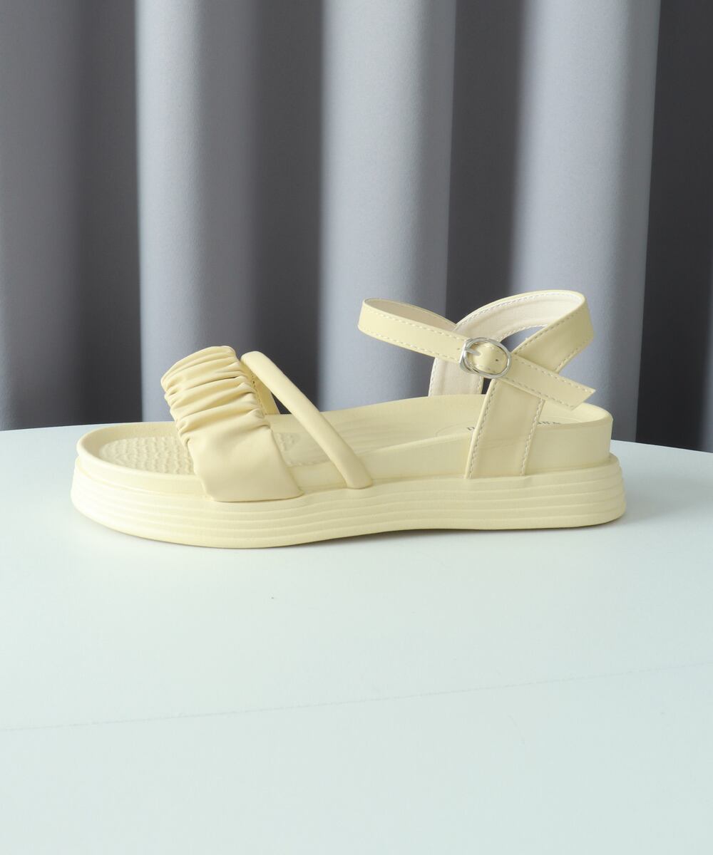 フラットサンダル ボリュームソール コンフォート ギャザー 軽量 可愛い 韓国風 カジュアル おしゃれ フェミニン 旅行