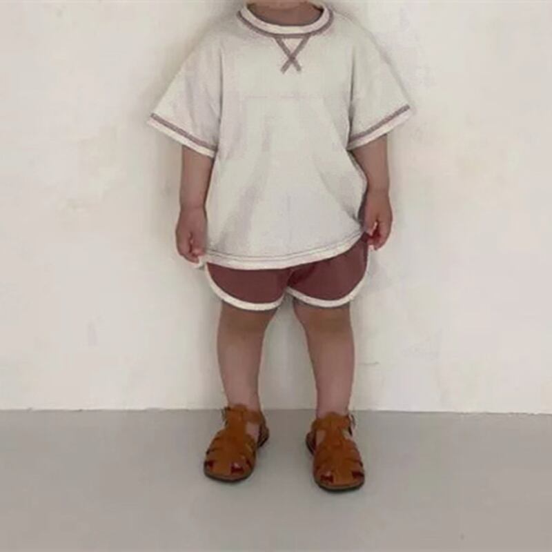 【海外からの取り寄せ】ins 夏新作 子供服 男女兼用 セットアップ 半袖Tシャツ ショートパンツ 可愛い おしゃれ 無地 #[ckd1093288_15500]【送料込み】【250517】