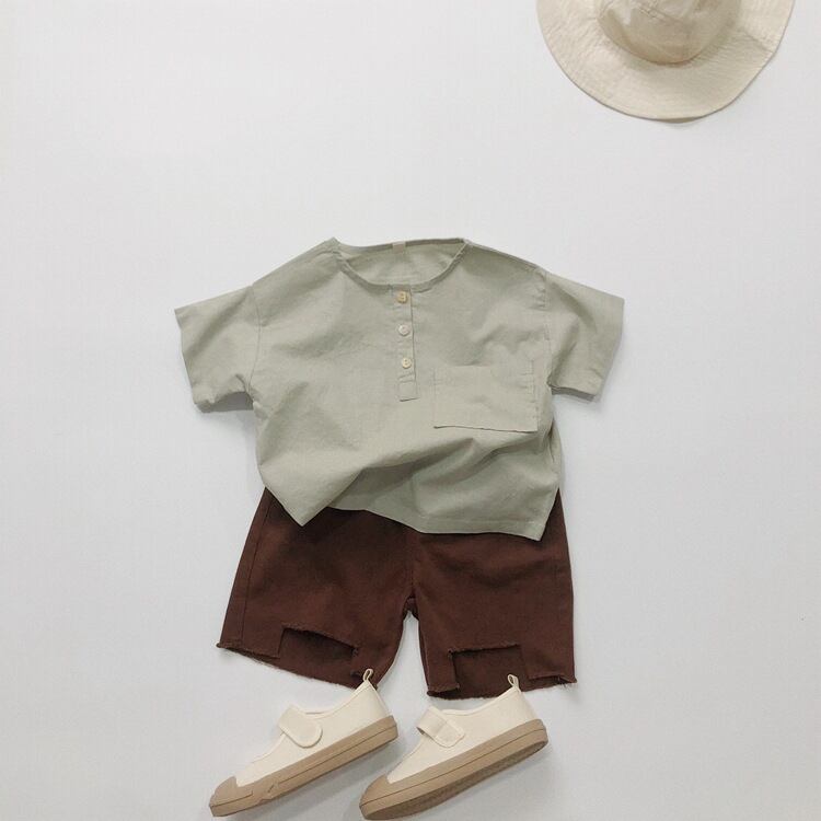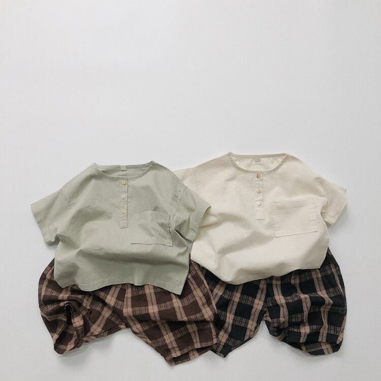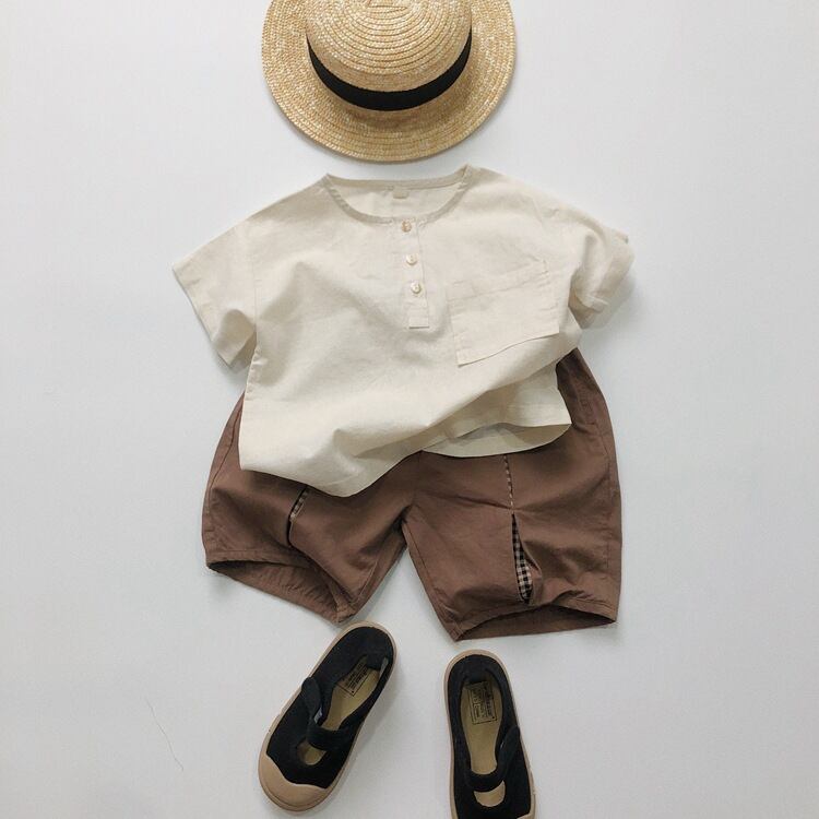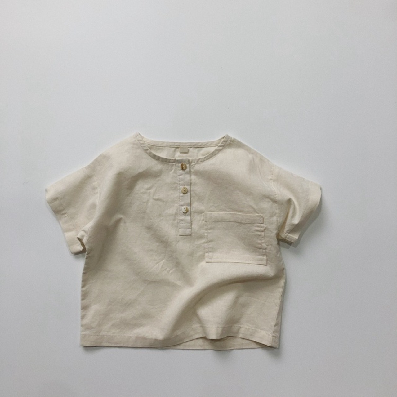 【海外からの取り寄せ】ins 夏新作 子供服 リネン 半袖 シャツ クルーネック カジュアル トップス ユニセックス 無地 #[ckd1093337_16500]【送料込み】【250417】