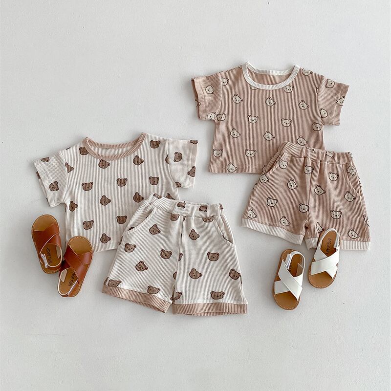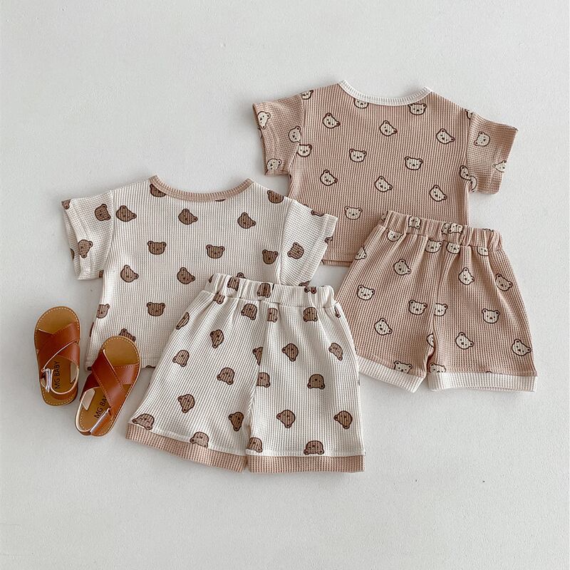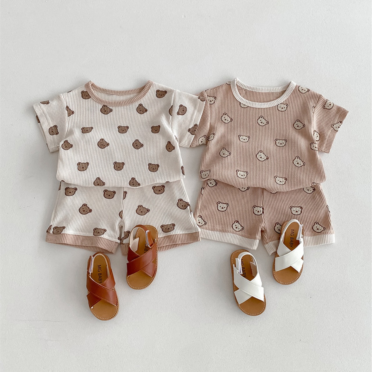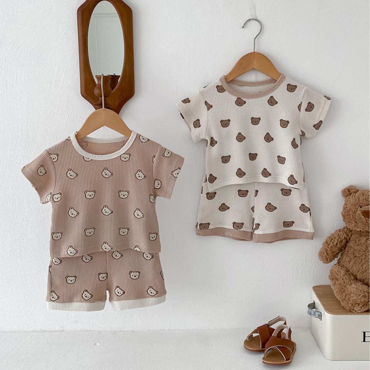 【海外からの取り寄せ】2024夏新作 ベビー服 ワッフル クマ セットアップ Tシャツ ショートパンツ 子供服 可愛い 柔らか #[ckd1093371_15900]【送料込み】【250517】