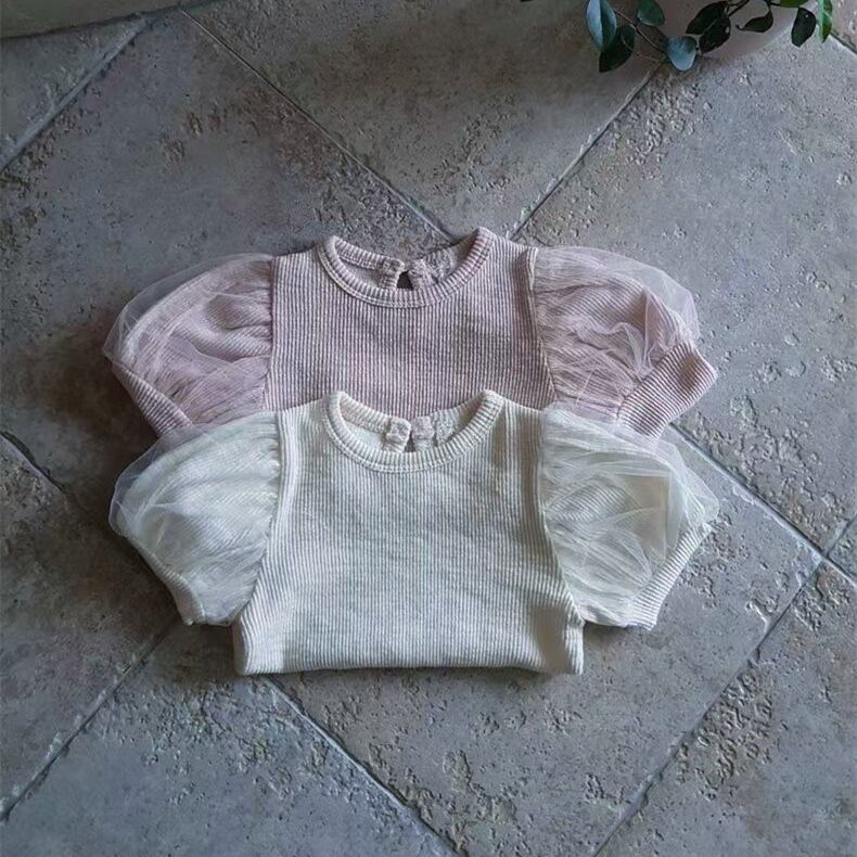 2024春新作 ベビー服 チュール パフスリーブ Tシャツ 女児 リブ トップス 子供服 インナーシャツ #[ckd1093064_11100]【海外倉庫からの発送】 【北海道・沖縄・離島は発送できません】