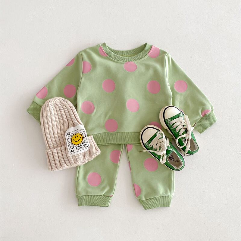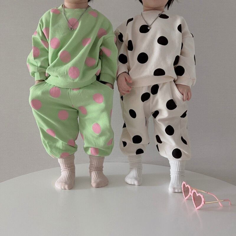 【海外からの取り寄せ】ins 秋新作 ベビー服 セットアップ ドット柄 トレーナー ロングパンツ 男女兼用 可愛い おしゃれ #[ckd1092295_24400]【送料込み】【250517】