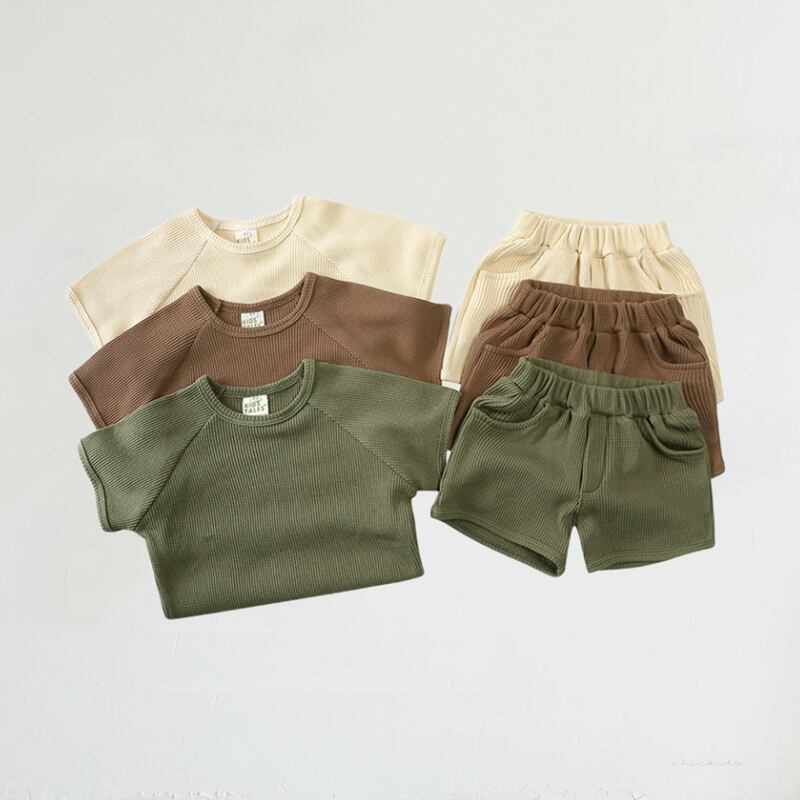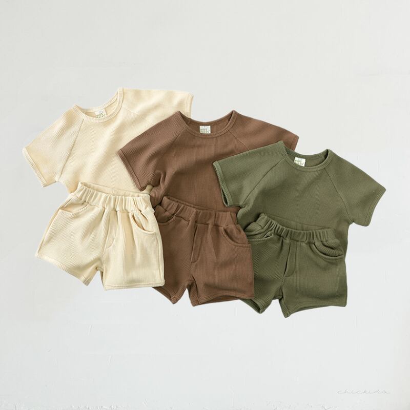 【海外からの取り寄せ】夏新作 ins ベビー服 ワッフル セットアップ Tシャツ ショートパンツ カジュアル 無地 2点セット #[ckd1091733_14300]【送料込み】【250517】