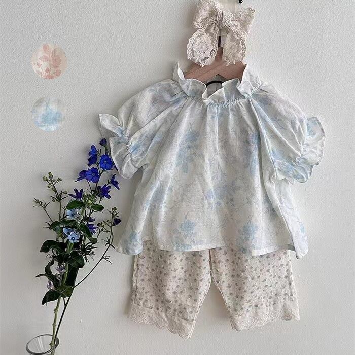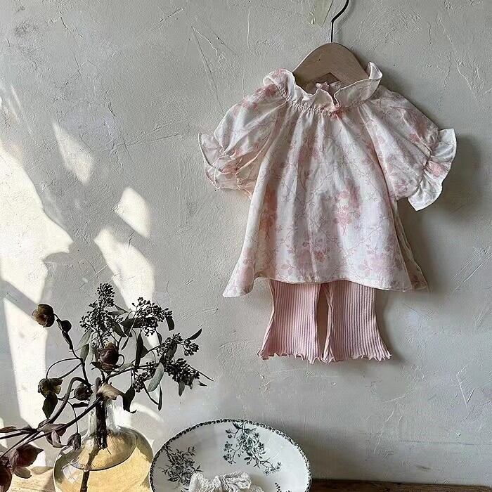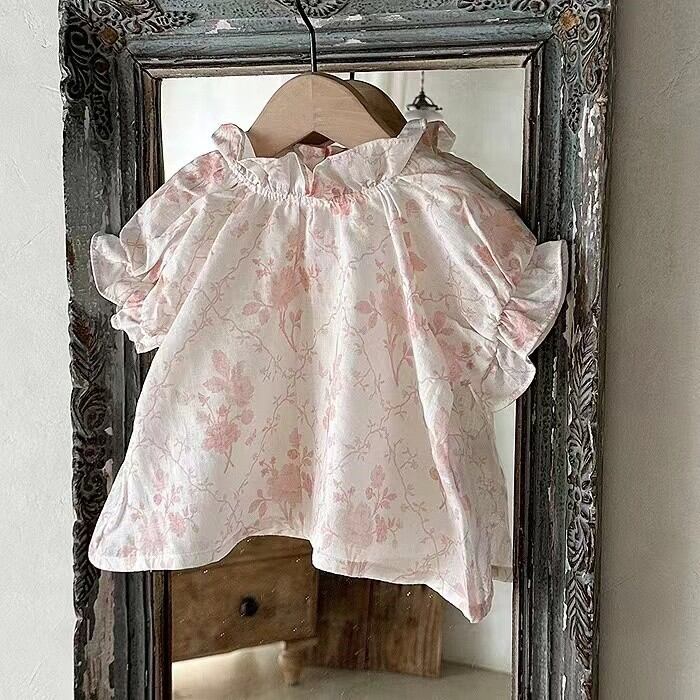 2023夏新作 ベビー服 女の子 立ち襟 花柄 半袖 ブラウス トップス 可愛い おしゃれ パフスリーブ #[ckd1091816_9900]【海外倉庫からの発送】 【北海道・沖縄・離島は発送できません】