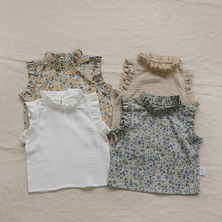 【海外からの取り寄せ】2023夏新作 ins ベビー服 女の子 無地 ベスト ノースリーブ 立ち襟 フリル 可愛い おしゃれ #[ckd1091704_13700]【送料込み】【250504】