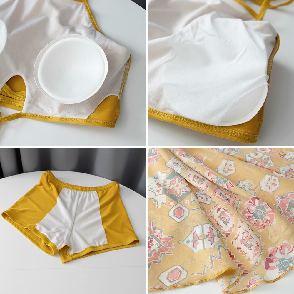 エスニック柄水着 3点セット 体型カバー おしゃれ 小胸向け盛れる水着 ハイウエストセクシークロスバンド水着 大人可愛い
