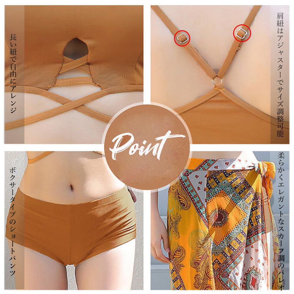 露出が少なくてもセクシーに魅せてくれるパレオ付水着3点セット
