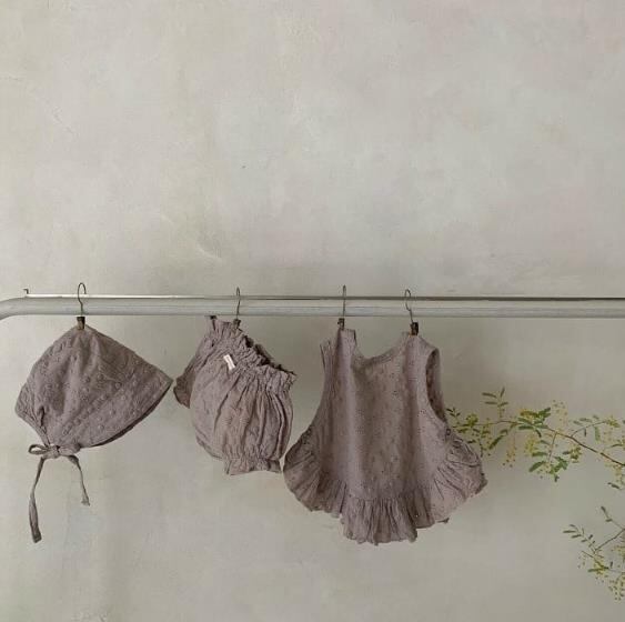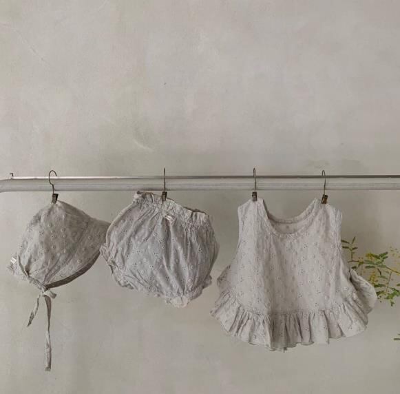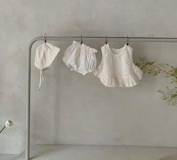 【海外からの取り寄せ】ins 夏 ベビー服 セットアップ トップス パンツ ボンネット付き 刺繍 ドット柄 可愛い #[ckd101692_19400]【送料込み】【250517】