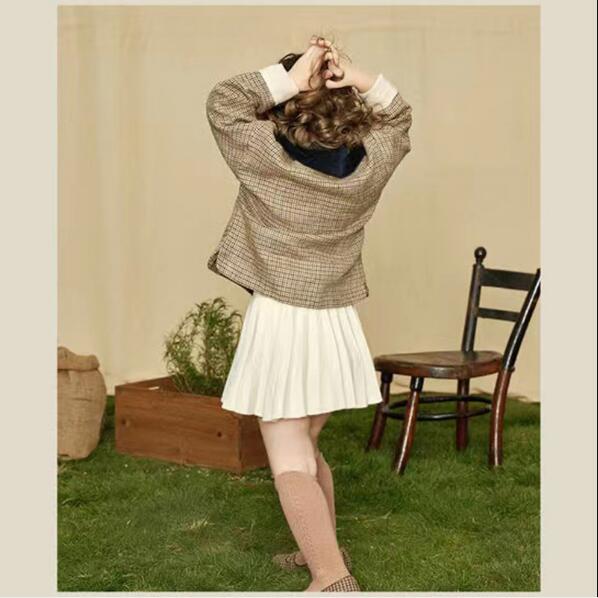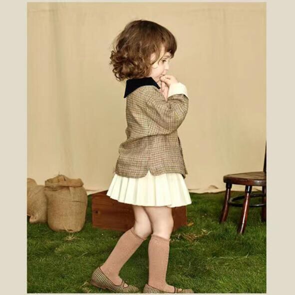 【海外からの取り寄せ】春秋 子供服 キッズ服 2点セット チェックコート プリーツスカート 女の子セットアップ ファッション #[ckd102058_36100]【送料込み】【250517】