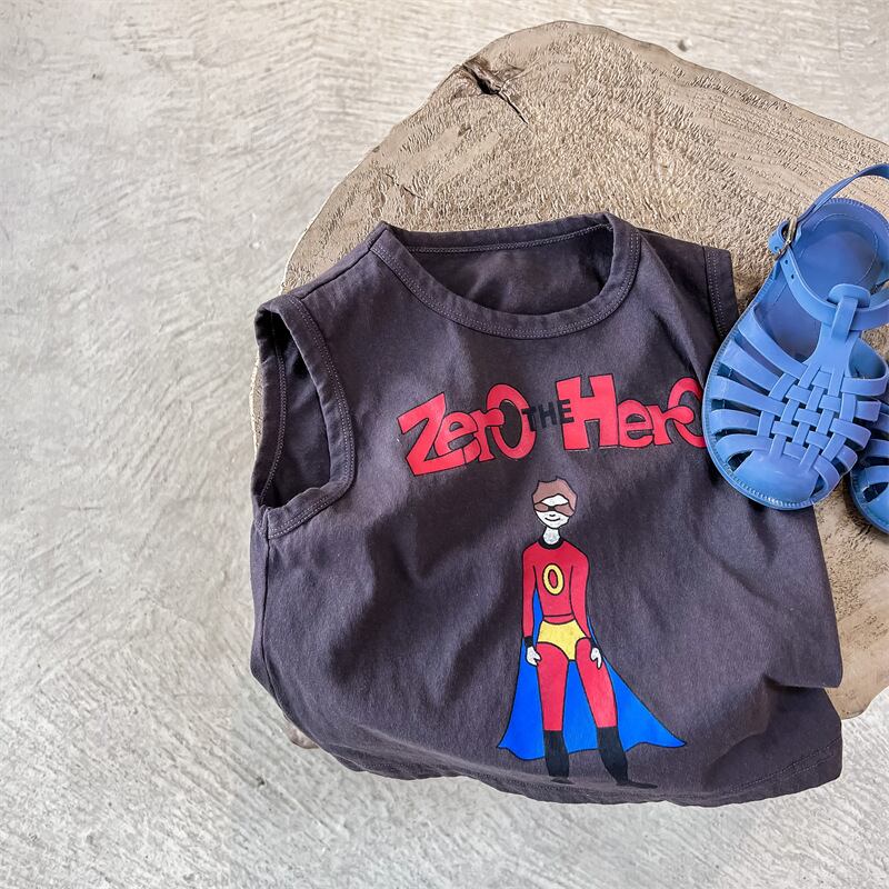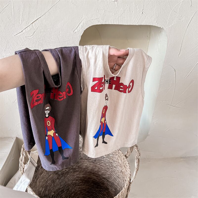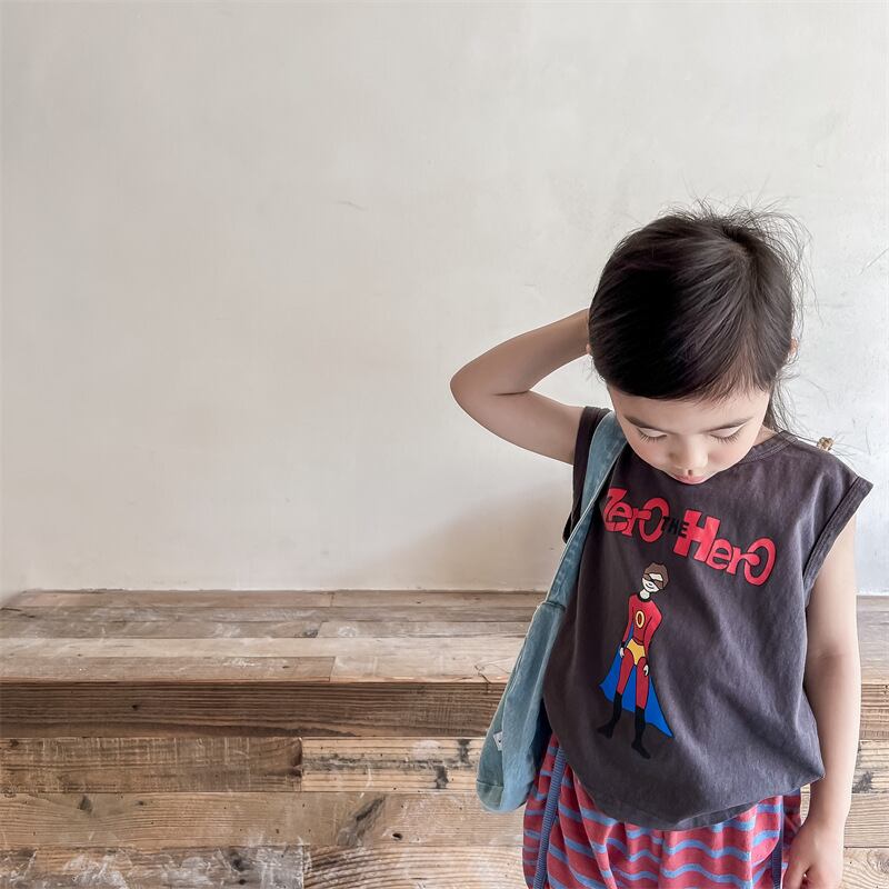 【海外からの取り寄せ】2024夏新作 子供服 ノースリーブ Tシャツ ユニセックス プリント カジュアル 柔らか 普段着 #[ckd1093457_10600]【送料込み】【250502】