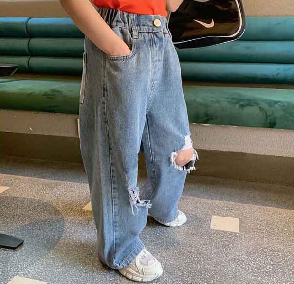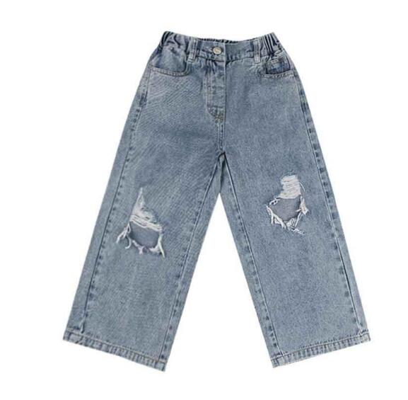 【海外からの取り寄せ】子供 ダメージデニムパンツ 韓国子供服 ロング ジーンズ ワイドパンツ 子供服 ゆったり カジュアル #[ckd102696_13200]【送料込み】【250506】