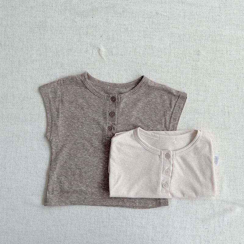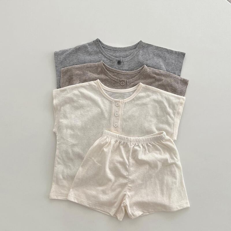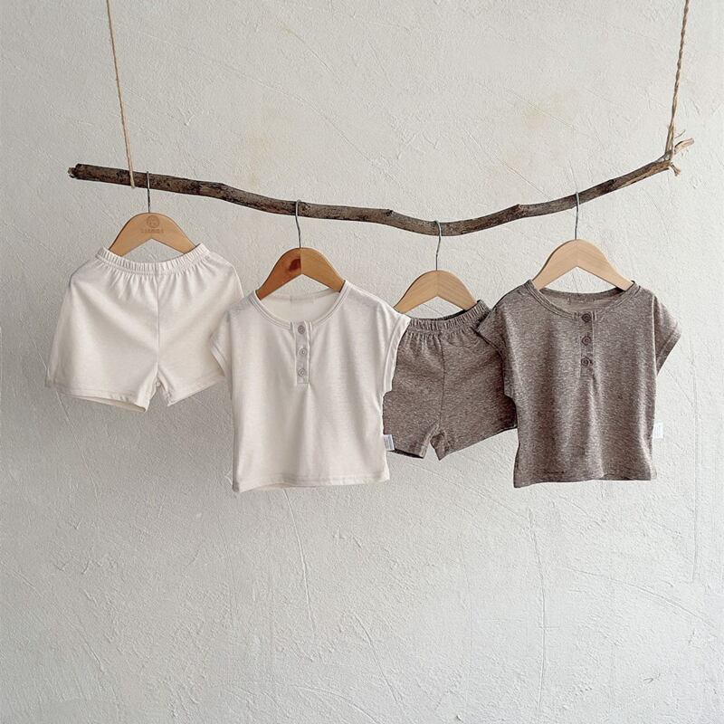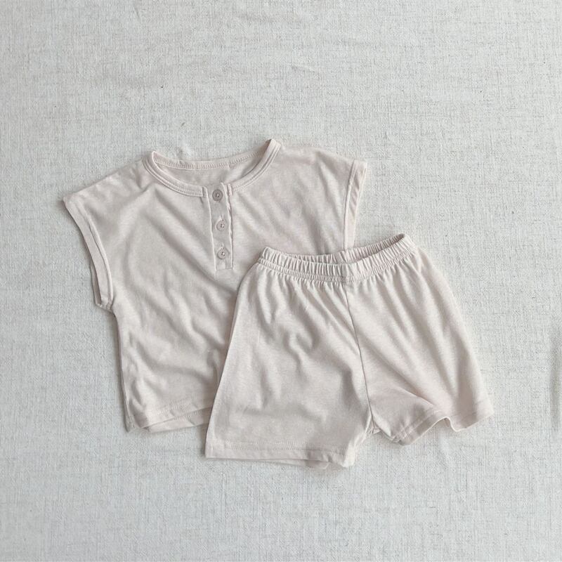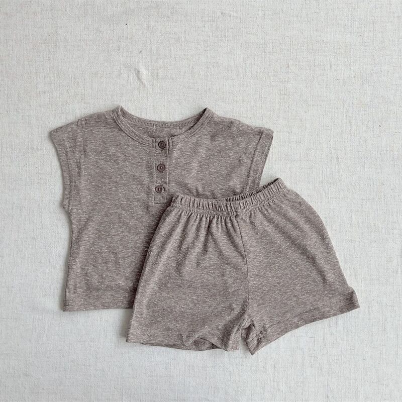 【海外からの取り寄せ】ins 夏新作 子供服 ノースリーブ セットアップ Tシャツ ショートパンツ 柔らか 可愛い 麻色 無地 #[ckd1093326_16300]【送料込み】【250518】
