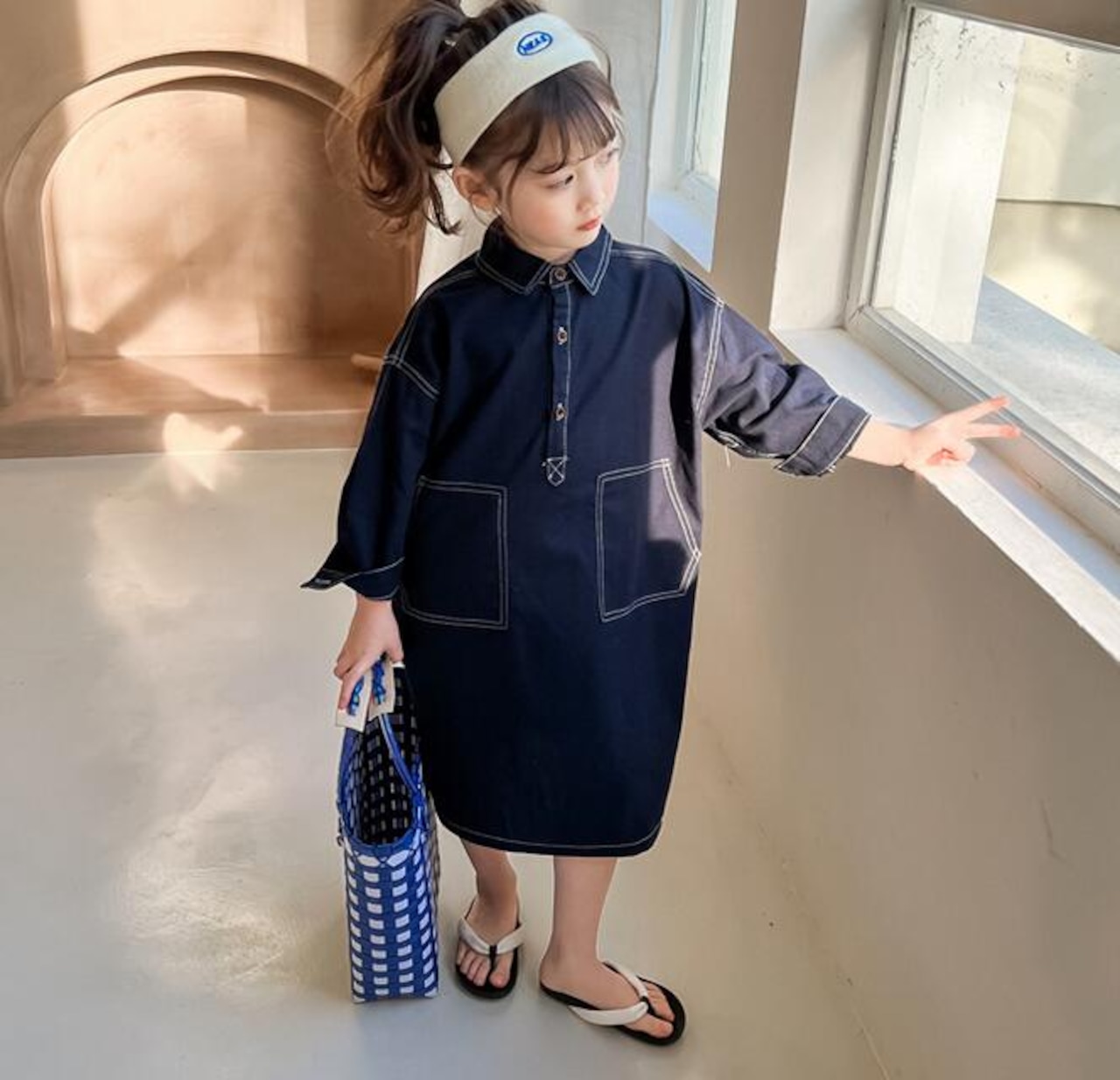 【海外からの取り寄せ】秋 女の子 シャツワンピース 子供服 春秋 おしゃれ ゆったり ワンピース 長袖 可愛い 韓国子供服 #[ckd102222_19400]【送料込み】【250525】