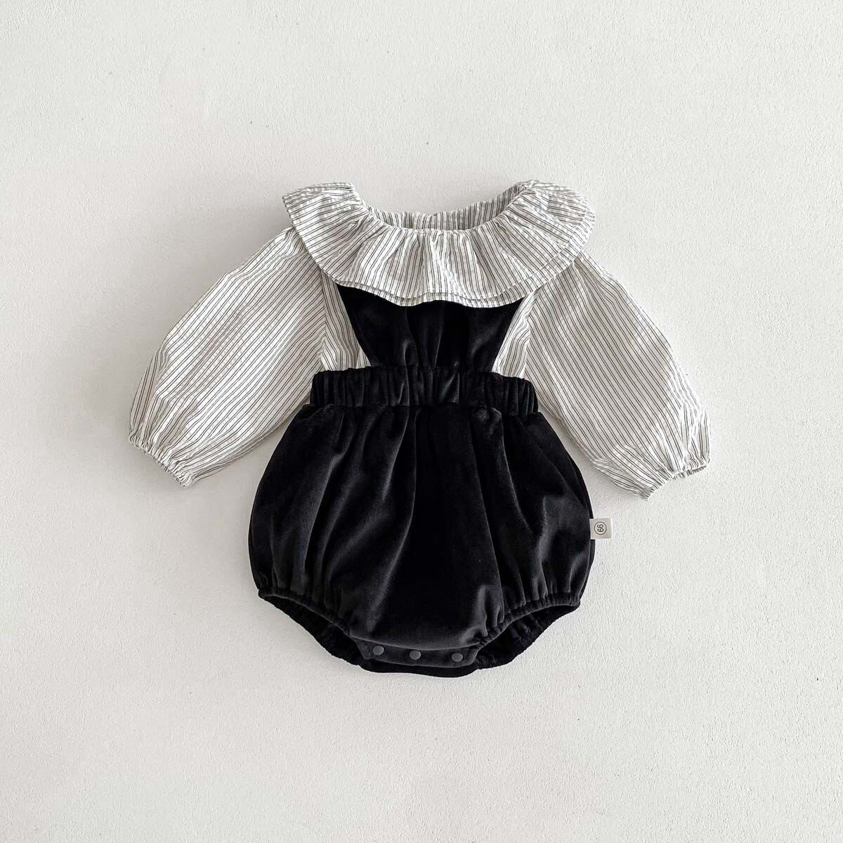 【海外からの取り寄せ】2024春新作 ベビー服 ストライプ ロンパース シャツ 2点セット 可愛い おしゃれ 子供服 普段着 #[ckd1093021_26100]【送料込み】【250513】