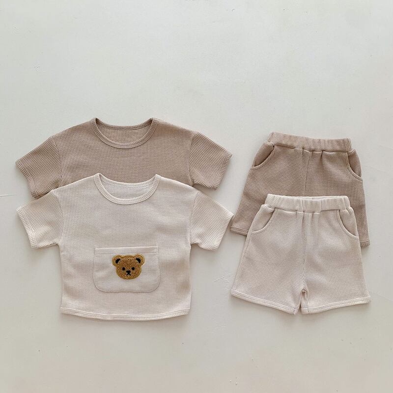 【海外からの取り寄せ】ins 夏新作 ベビー服 ワッフル クマ セットアップ 半袖 Tシャツ ショートパンツ 子供服 可愛い #[ckd1093353_14400]【送料込み】【250907】