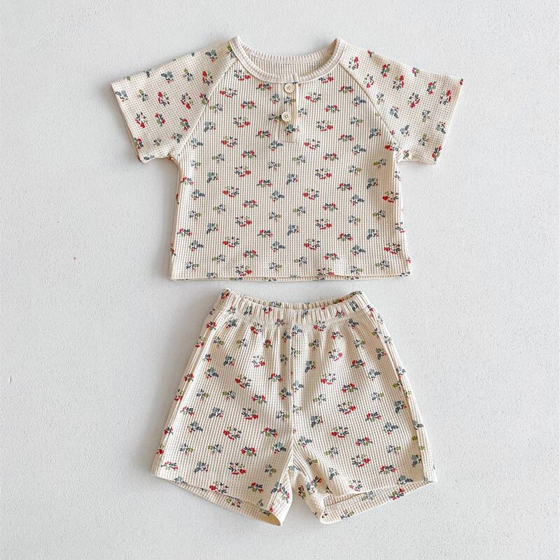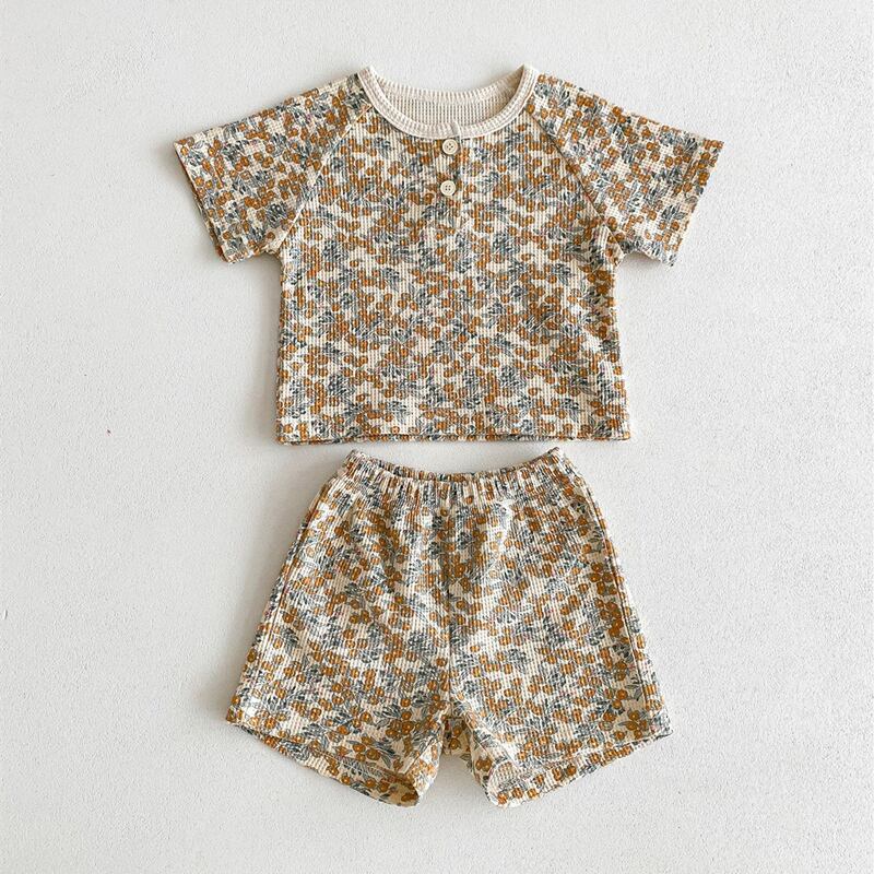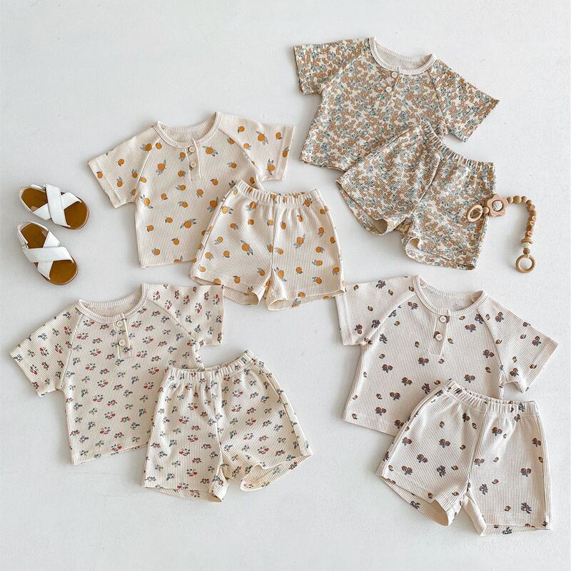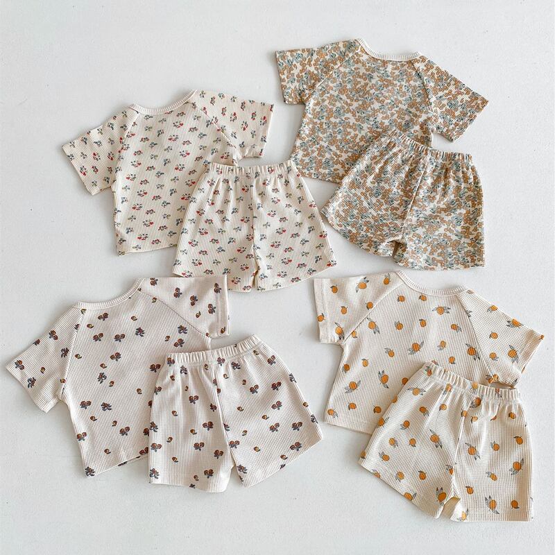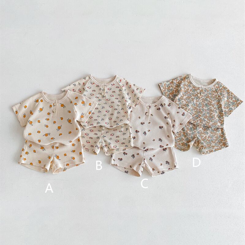 【海外からの取り寄せ】2024夏新作 ベビー服 ワッフル 花柄 セットアップ 半袖 Tシャツ ショートパンツ 子供服 可愛い #[ckd1093354_16000]【送料込み】【250429】