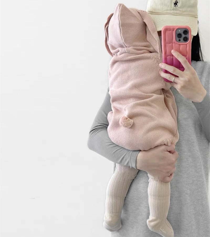 2023秋新作 ベビー服 ニット ロンパース 前開き ウサギ耳 オーバーオール 可愛い 子供服 ボトムス #[ckd1092316_25800]【海外倉庫からの発送】 【北海道・沖縄・離島は発送できません】