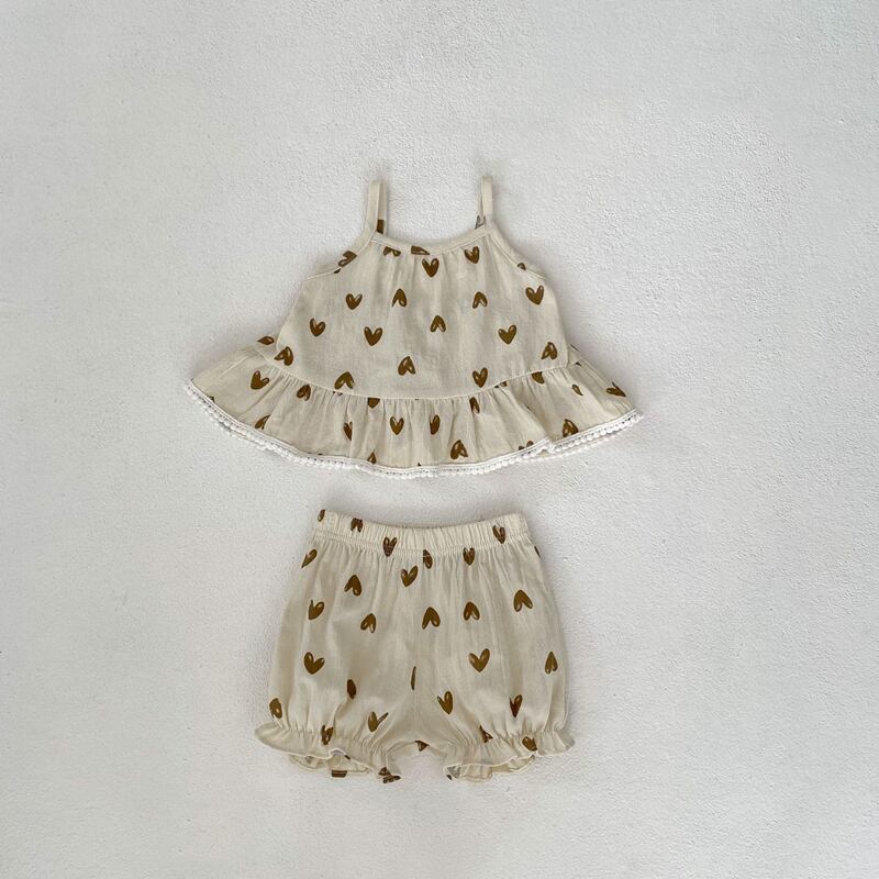 【海外からの取り寄せ】2024夏新作 ベビー服 女の子 セットアップ ハート柄 キャミソール ショートパンツ 子供服 可愛い #[ckd1093206_16400]【送料込み】【250517】