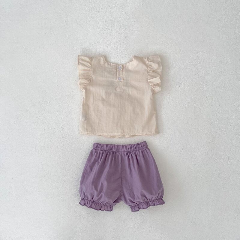 【海外からの取り寄せ】2024夏新作 ベビー服 女児 フラッタースリーブ 2点セット トップス ハーフパンツ 子供服 可愛い #[ckd1093207_18500]【送料込み】【250517】