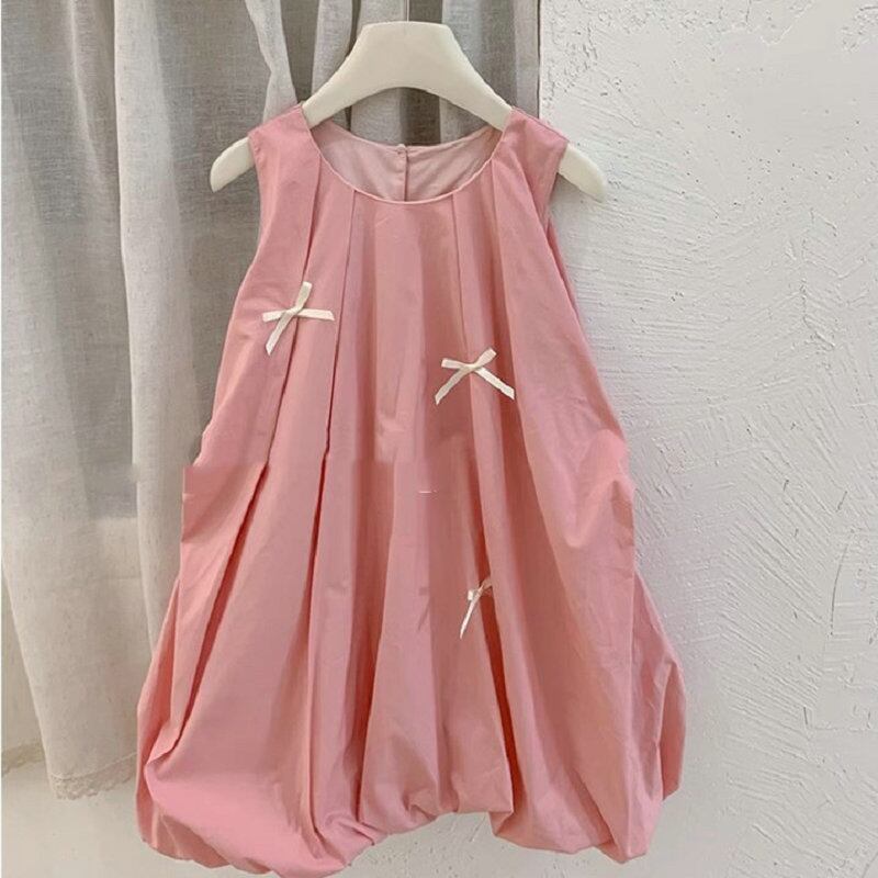 【海外からの取り寄せ】2024新作 韓国子供服 キッズ かわいい リボン ノースリーブ ワンピース ピンク バルーン ワンピ 子供 #[kids746_13800]【送料込み】【250326】