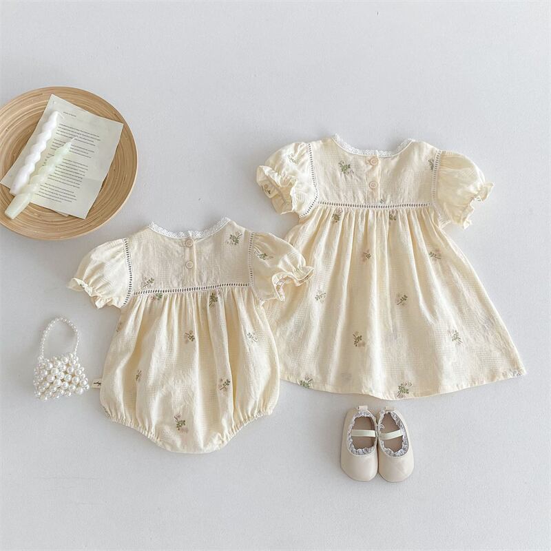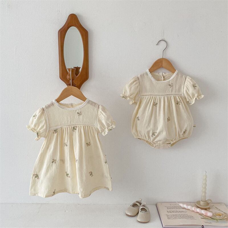 【海外からの取り寄せ】2024夏新作 ベビー服 姉妹 お揃い 刺繍花柄 半袖 ロンパース ワンピース 子供服 可愛い 2タイプ #[ckd1093480_18000]【送料込み】【250408】