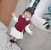 子供服 2点セット ニットチョッキ 長袖 ワンピース セーター 秋冬 CHIC 韓国ファッション