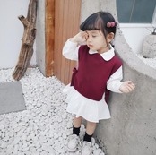 【海外からの取り寄せ】子供服 2点セット ニットチョッキ 長袖 ワンピース セーター 秋冬 CHIC 韓国ファッション #[ckd101019_17600]【送料込み】【250423】