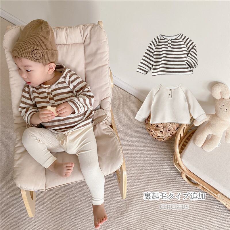 【海外からの取り寄せ】秋 裏起毛タイプ追加 キッズ長袖 Tシャツ 肌ざわりの良い 韓国子供服 トップス 無地 ボーダー #[ckd101049_13500]【送料込み】【260125】