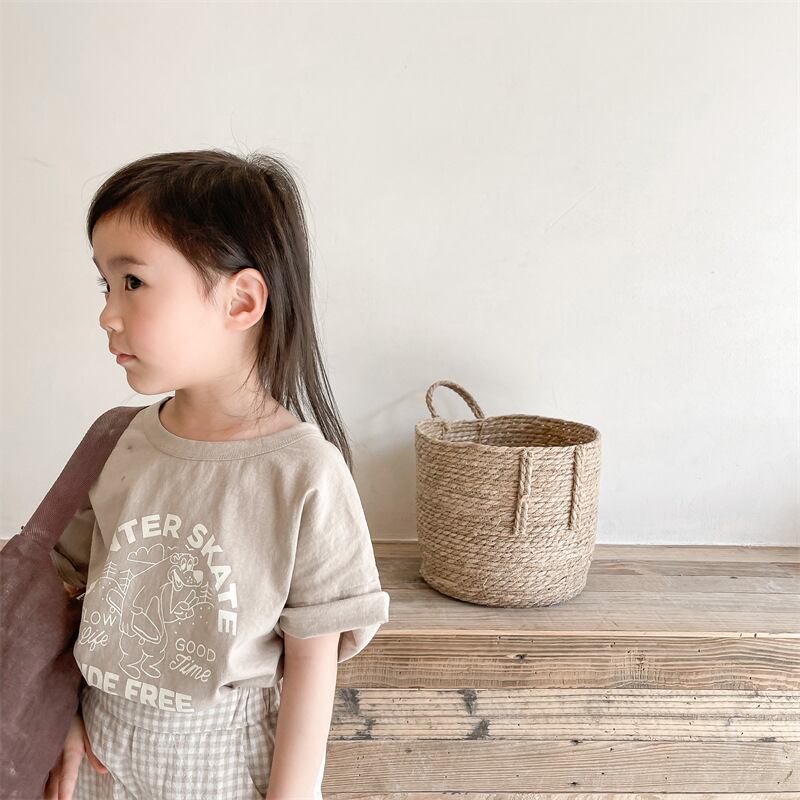【海外からの取り寄せ】ins 夏新作 子供服 クルーネック 可愛い 英字 Tシャツ カジュアル トップス 柔らか 半袖 #[ckd1093489_11700]【送料込み】【250502】