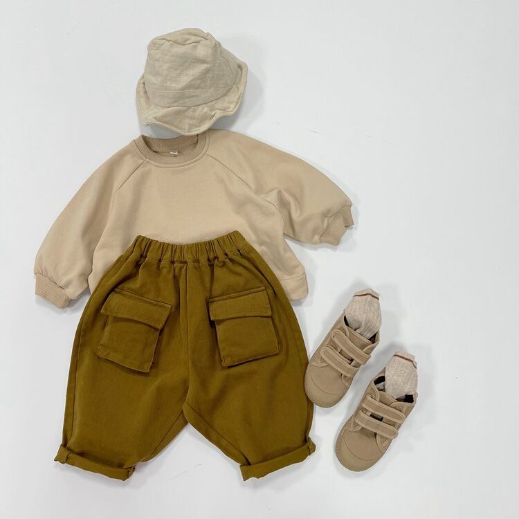【海外からの取り寄せ】2024春新作 子供服 カジュアル 無地 ロングパンツ レトロ風 ボトムス 男女兼用 ズボン 春 秋 #[ckd1092925_19500]【送料込み】【250512】