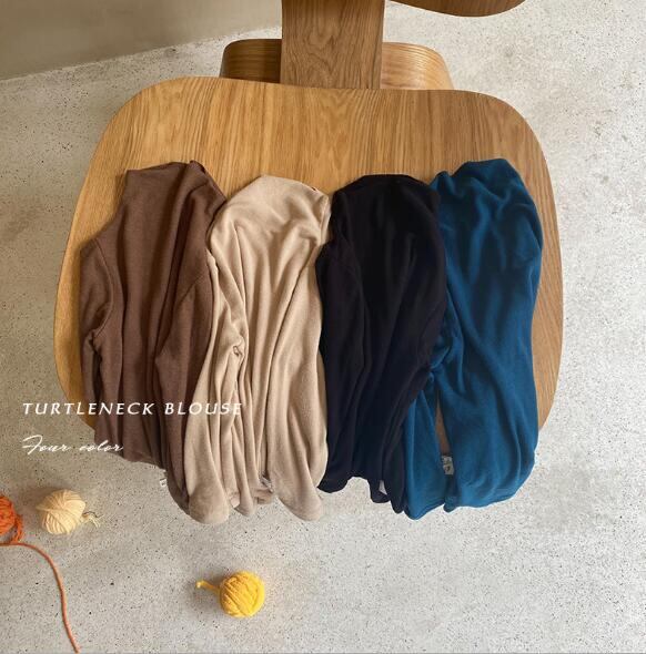 秋冬新作 キッズ 韓国 長袖 Tシャツ 子供服 シンプル ハイネック インナー カジュアル トップス