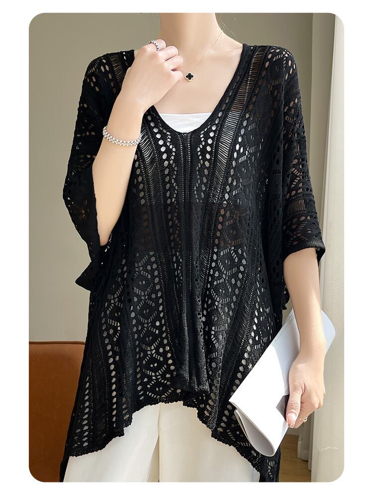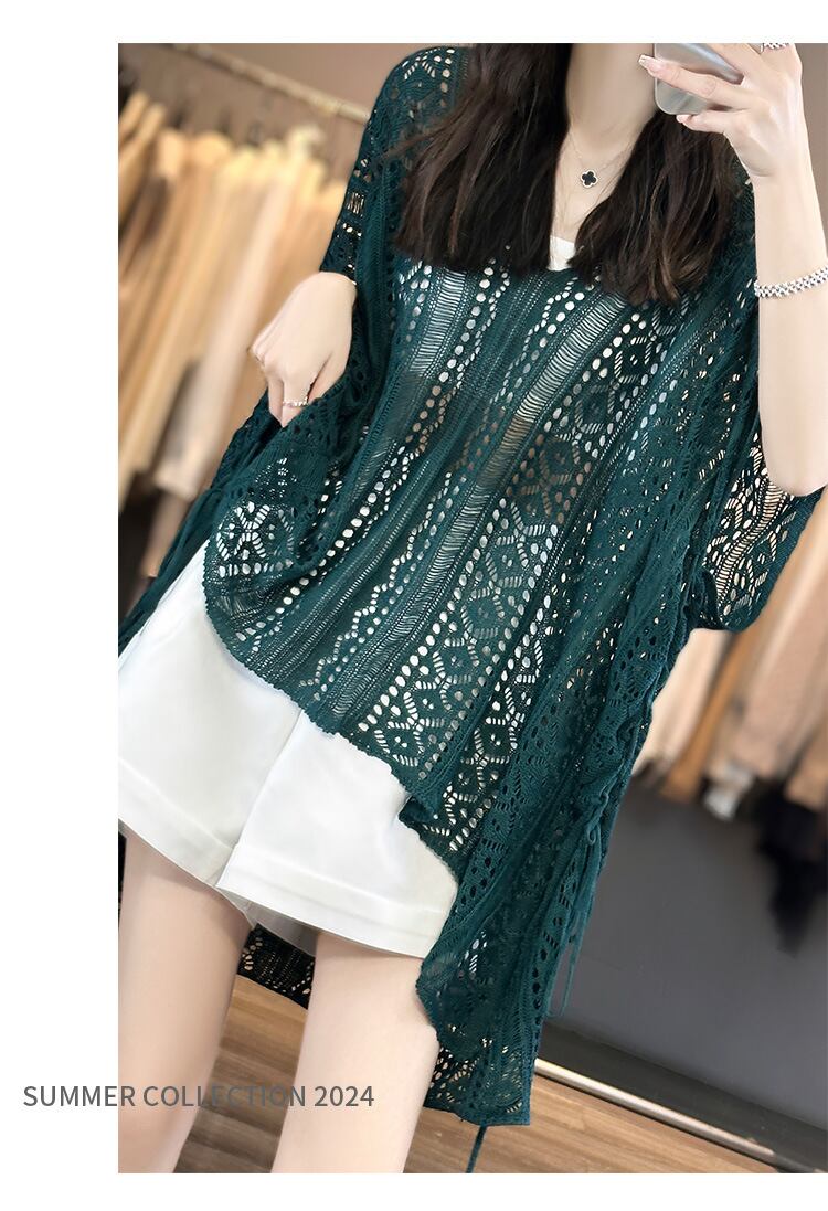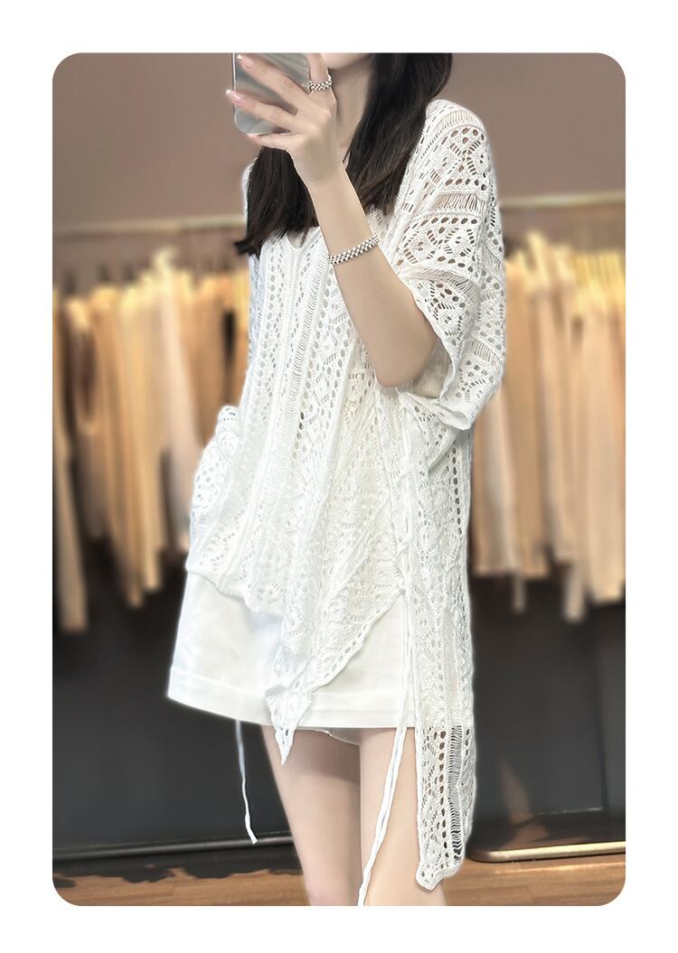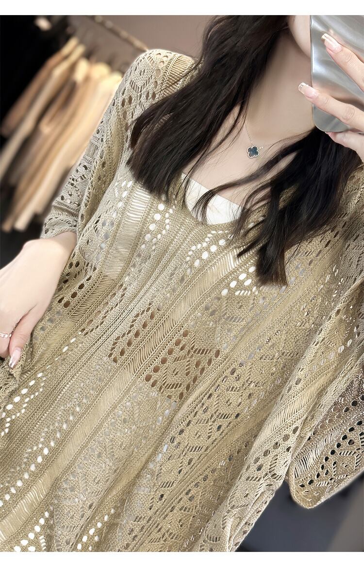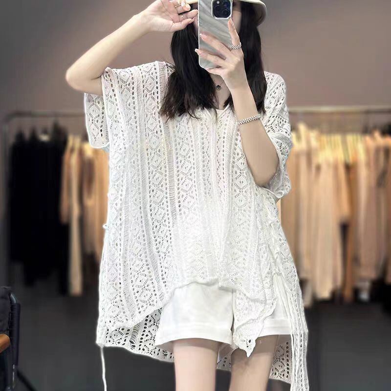 【海外からの取り寄せ】2024新作 ニット ざっくり編み トップス クロシェ編み Vネック サマーニット 透け感 オシャレ #[tops419_9800]【送料込み】【250712】
