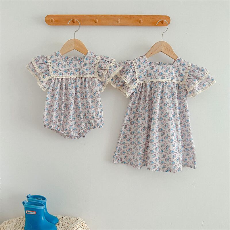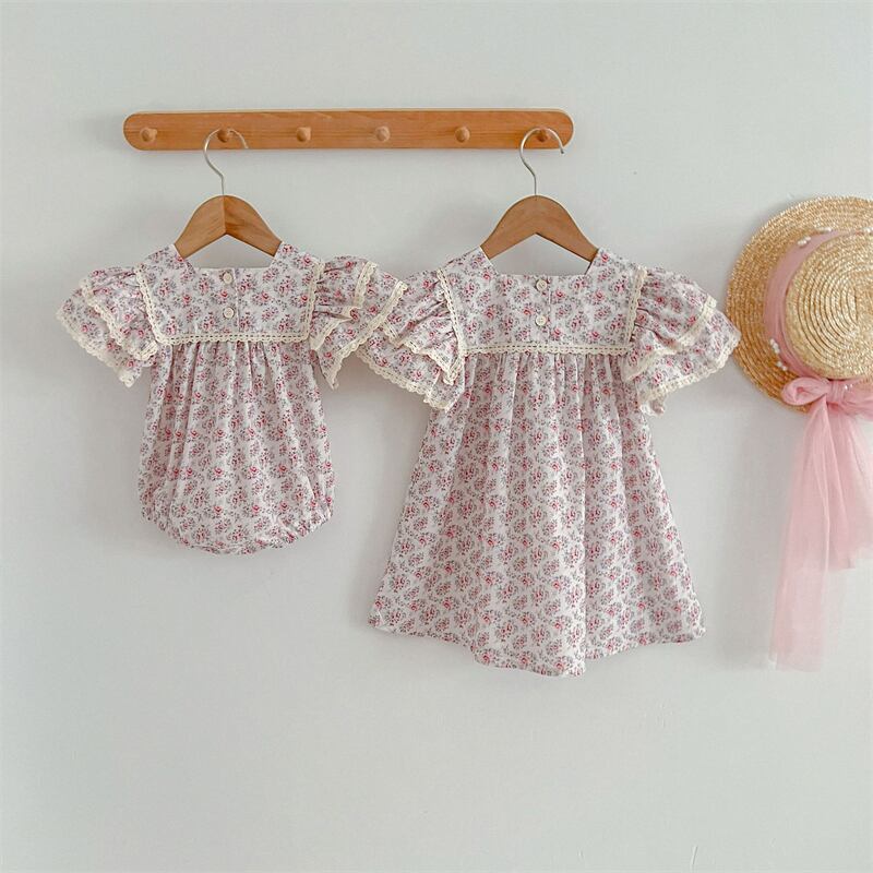 【海外からの取り寄せ】2024夏新作 子供服 姉妹 お揃い 選べる2タイプ スクエアネック ロンパース ワンピース 可愛い #[ckd1093496_19100]【送料込み】【250413】